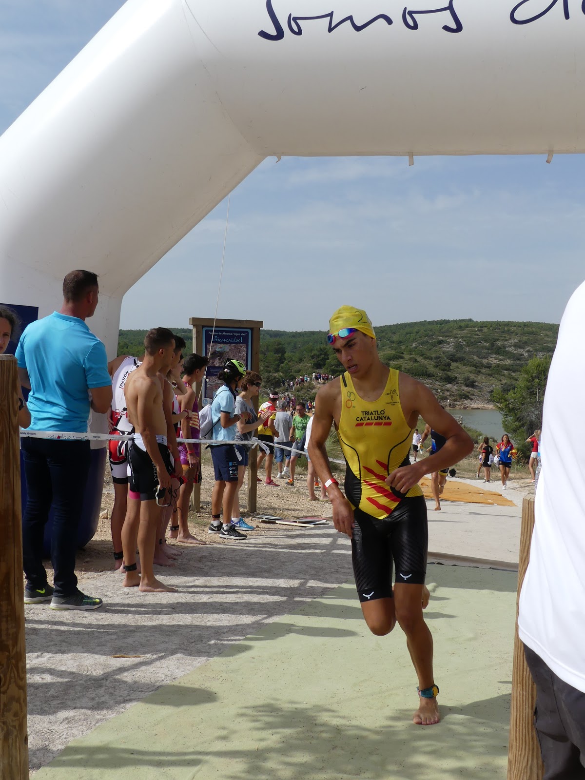 Paso el relevo a Pau . Hace una buena natación perdiendo sólo una posición
